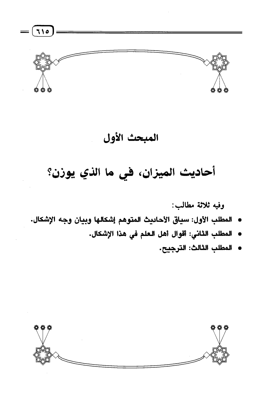 المبحث الأول: أحاديث الميزان، في ما الذي يوزن؟