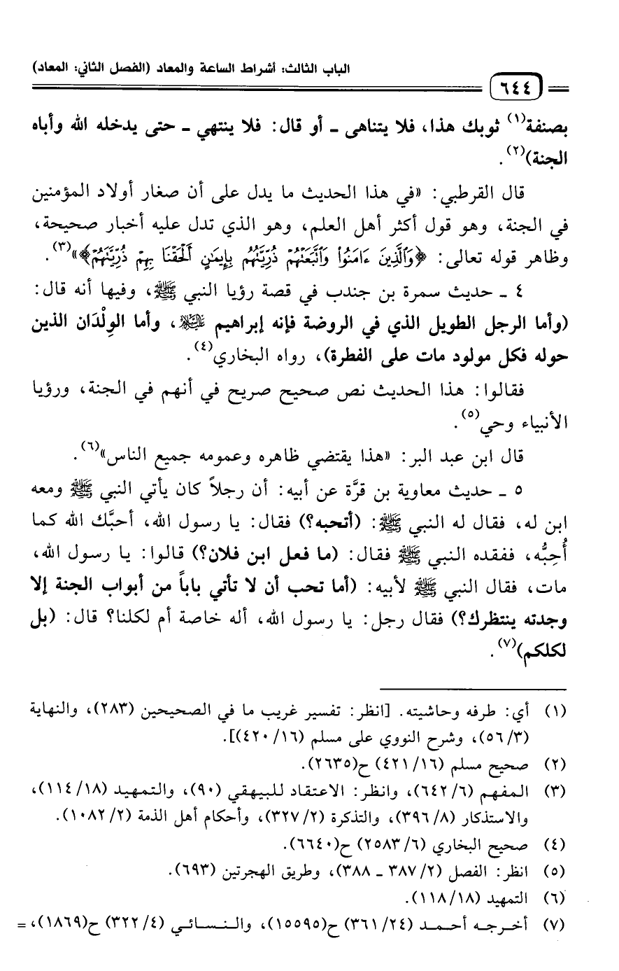 (¬٣) المفهم (٦/ ٦٤٢)، وانظر: الاعتقاد للبيهقي (٩٠)، والتمهيد (١٨/ ١١٤)، والاستذكار (٨/ ٣٩٦)، والتذكرة (٢/ ٣٢٧)، وأحكام أهل الذمة (٢/ ١٠٨٢).