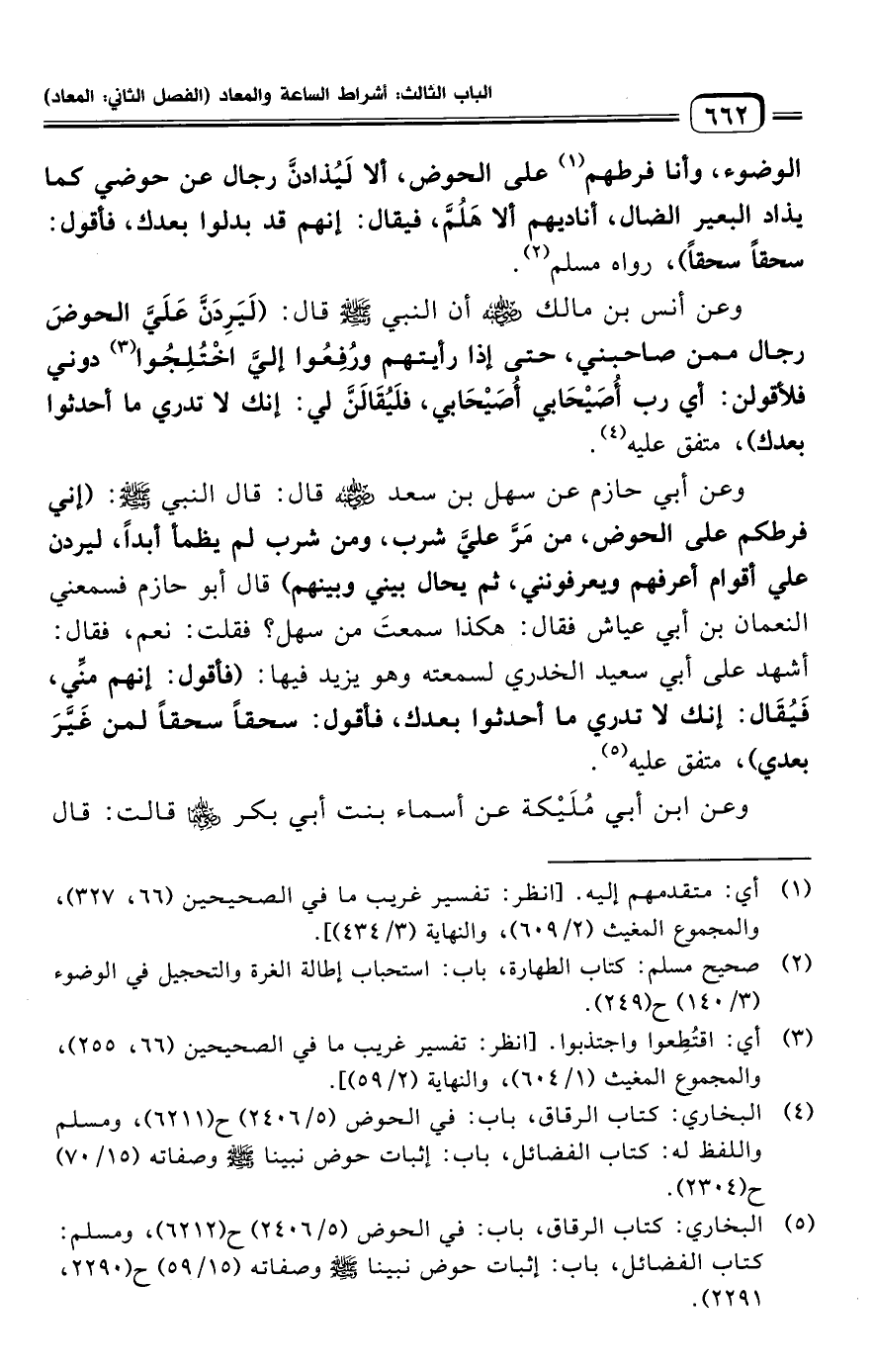 (¬٥) البخاري: كتاب الرقاق، باب: في الحوض (٥/ ٢٤٠٦) ح (٦٢١٢)، ومسلم: كتاب الفضائل، باب: إثبات حوض نبينا -صلى الله عليه وسلم- وصفاته (١٥/ ٥٩) ح (٢٢٩٠، ٢٢٩١).