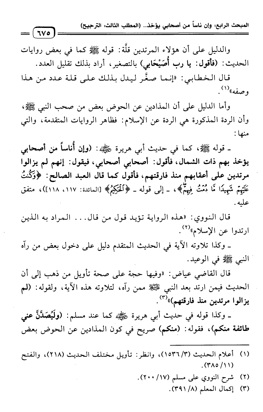 وأما الدليل على أن المذادين عن الحوض بعض من صحب النبي -صلى الله عليه وسلم-، وأن الردة المذكورة هي الردة عن الإسلام: فظاهر الروايات المتقدمة، والتي منها: