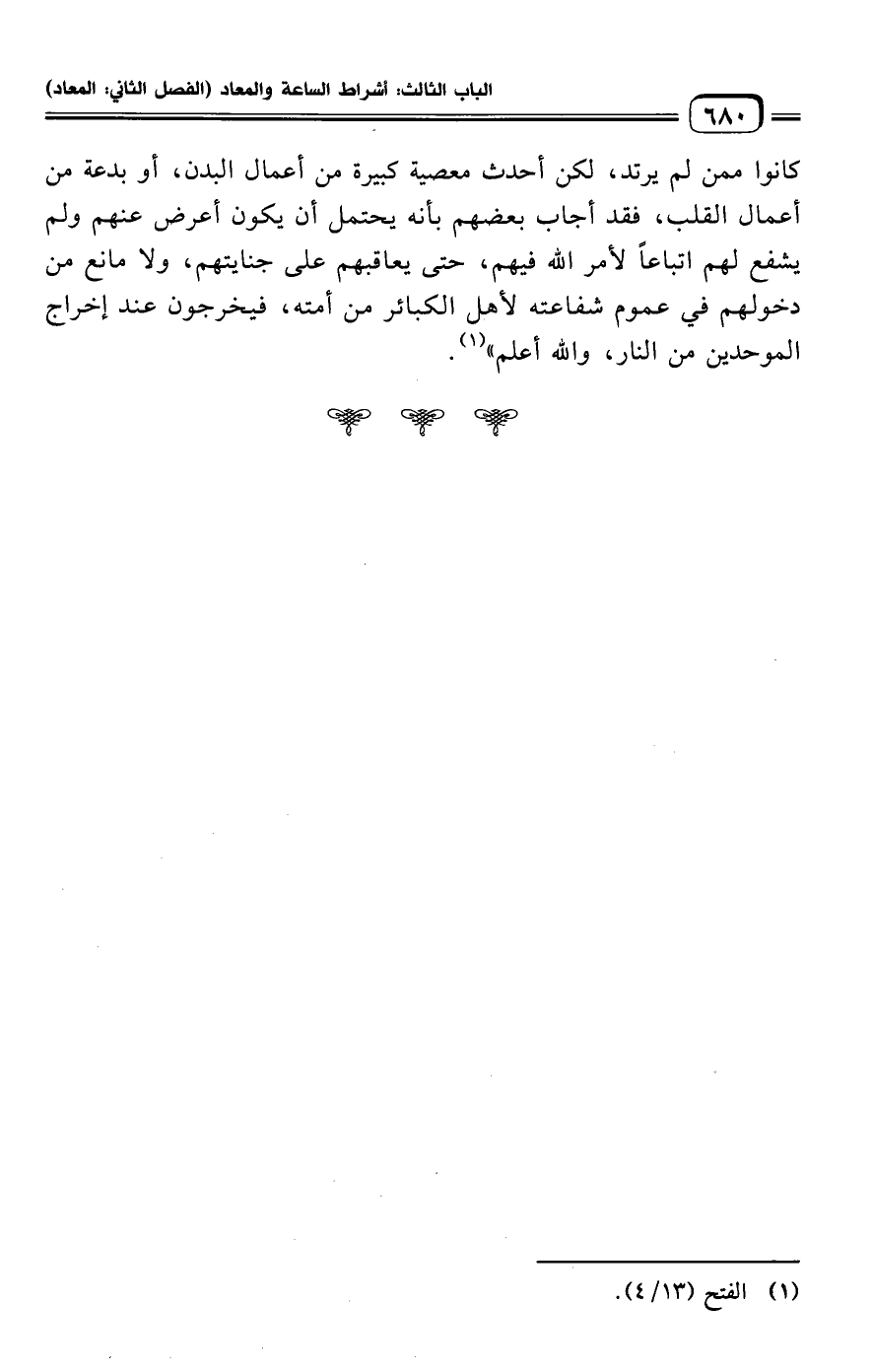 كانوا ممن لم يرتد، لكن أحدث معصية كبيرة من أعمال البدن، أو بدعة من أعمال القلب، فقد أجاب بعضهم بأنه يحتمل أن يكون أعرض عنهم ولم يشفع لهم اتباعًا لأمر الله فيهم، حتى يعاقبهم على جنايتهم، ولا مانع من دخولهم في عموم شفاعته لأهل الكبائر من أمته، فيخرجون عند إخراج الموحدين من النار، والله أعلم" (¬١).