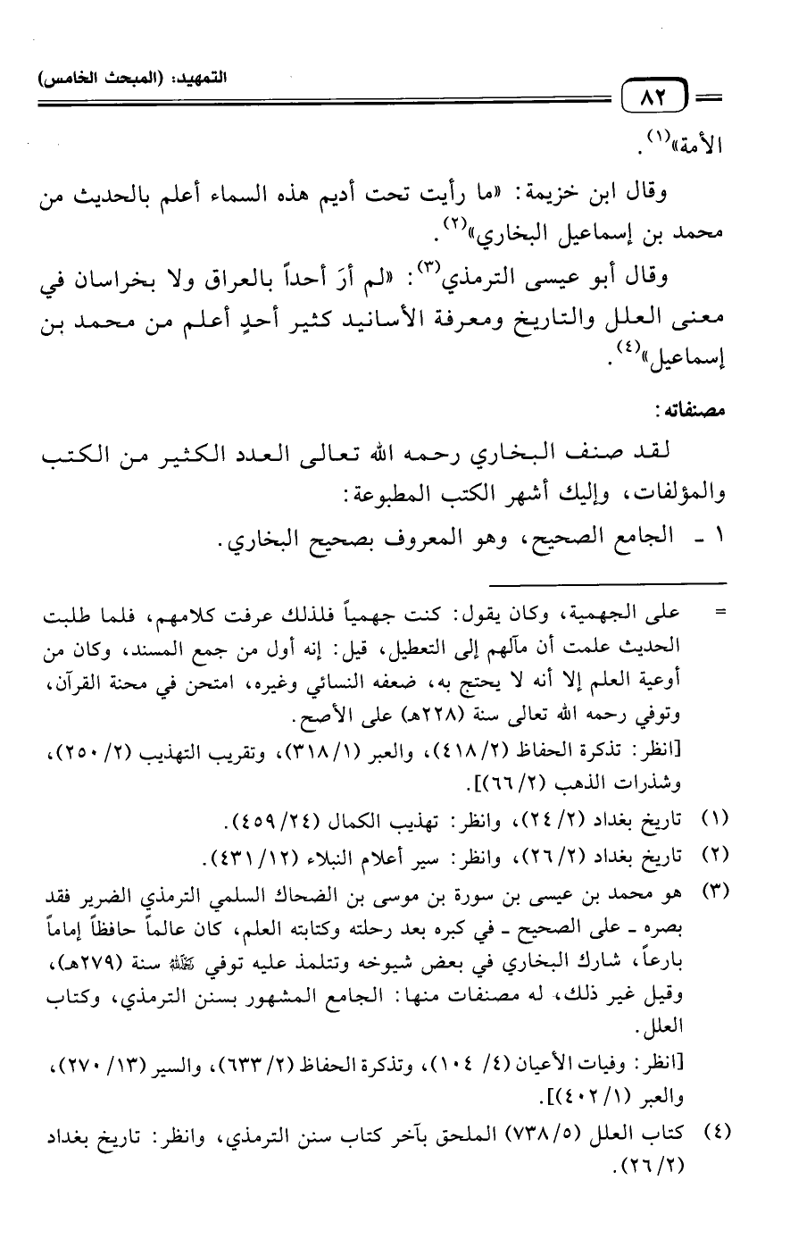 وقال ابن خزيمة: "ما رأيت تحت أديم هذه السماء أعلم بالحديث من محمد بن إسماعيل البخاري" (¬٢).