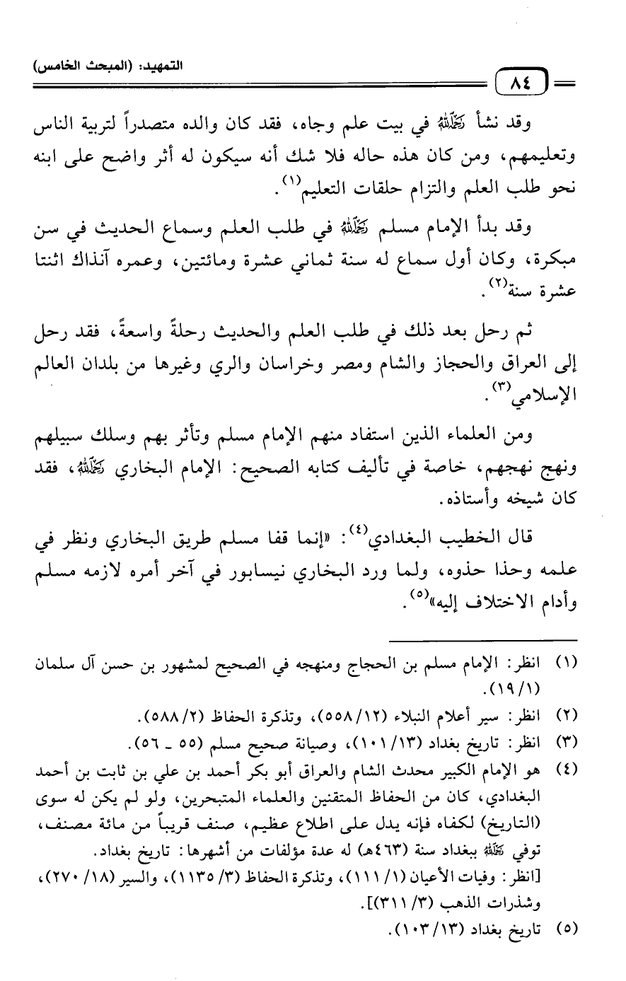 (¬١) انظر: الإمام مسلم بن الحجاج ومنهجه في الصحيح لمشهور بن حسن آل سلمان (١/ ١٩).