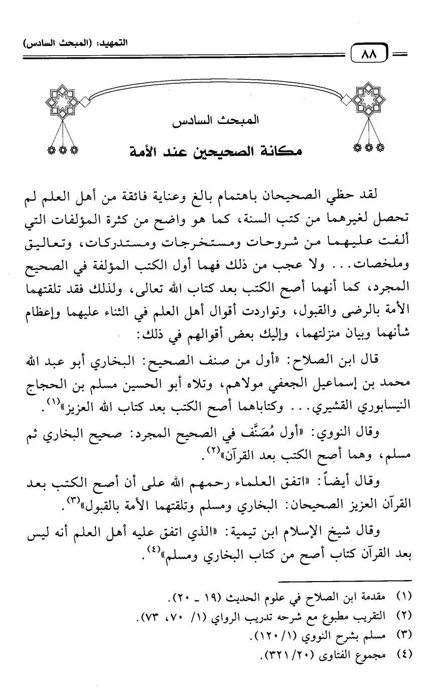 المبحث السادس: مكانة الصحيحين عند الأمة