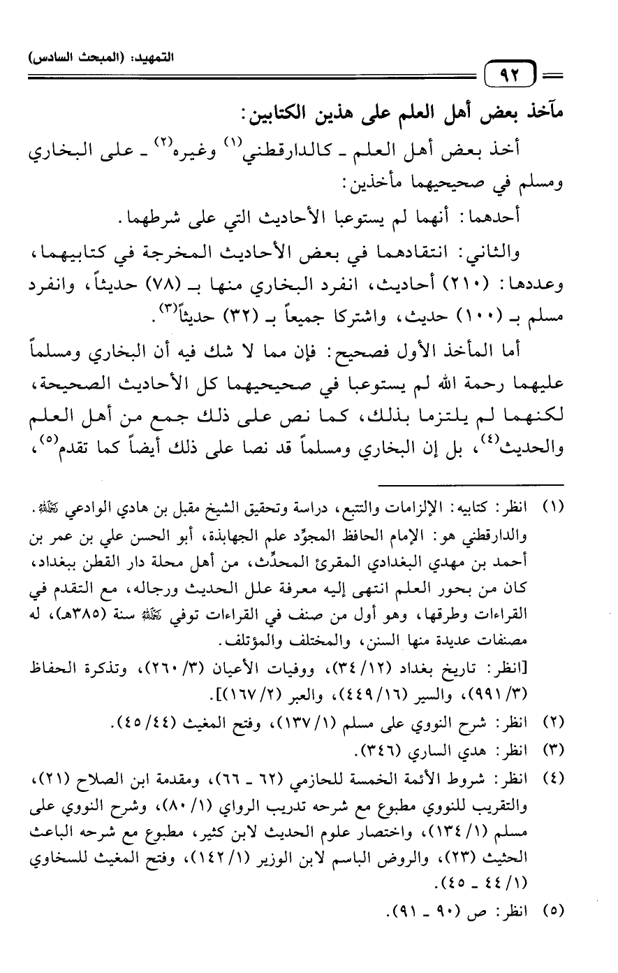 (¬٤) انظر: شروط الأئمة الخمسة للحازمي (٦٢ - ٦٦)، ومقدمة ابن الصلاح (٢١)، والتقريب للنووي مطبوع مع شرحه تدريب الرواي (١/ ٨٠)، وشرح النووي على مسلم (١/ ١٣٤)، واختصار علوم الحديث لابن كثير، مطبوع مع شرحه الباعث الحثيث (٢٣)، والروض الباسم لابن الوزير (١/ ١٤٢)، وفتح المغيث للسخاوي (١/ ٤٤ - ٤٥).
