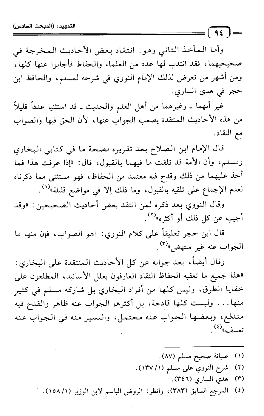 وقال النووي بعد ذكره لمن انتقد بعض أحاديث الصحيحين: "وقد أجيب عن كل ذلك أو أكثره" (¬٢).