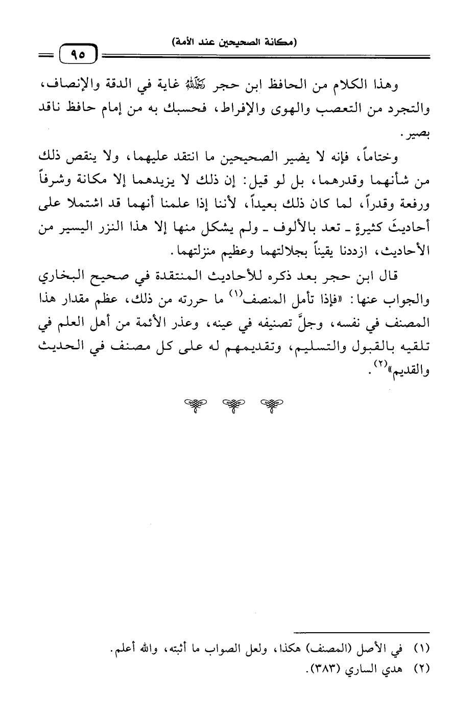 وهذا الكلام من الحافظ ابن حجر رَحِمَهُ اللهُ غاية في الدقة والإنصاف، والتجرد من التعصب والهوى والإفراط، فحسبك به من إمام حافظ ناقد بصير.