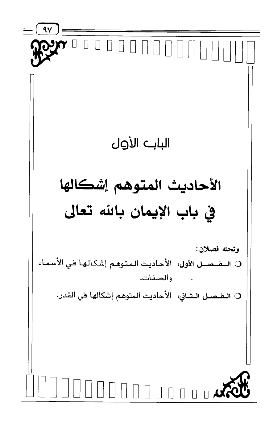 الباب الأول: الأحاديث المتوهم إشكالها في باب الإيمان بالله تعالى