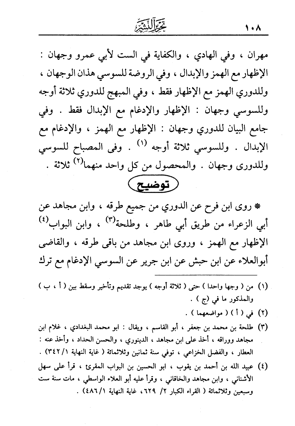 كتاب اتحاف البررة بما سكت عنه نشر العشرة = تحرير النشر
