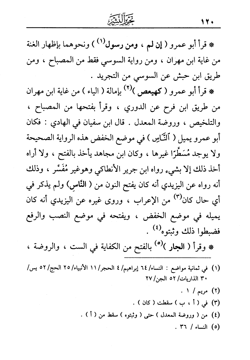 * قرأ أبو عمرو {(كهيعص)} (¬2) بإمالة (الياء) من غاية ابن مهران من طريق ابن فرح عن الدوري، وقرأ بفتحها من المصباح، والتلخيص، وروضة المعدل. قال ابن سفيان في الهادي: فكان