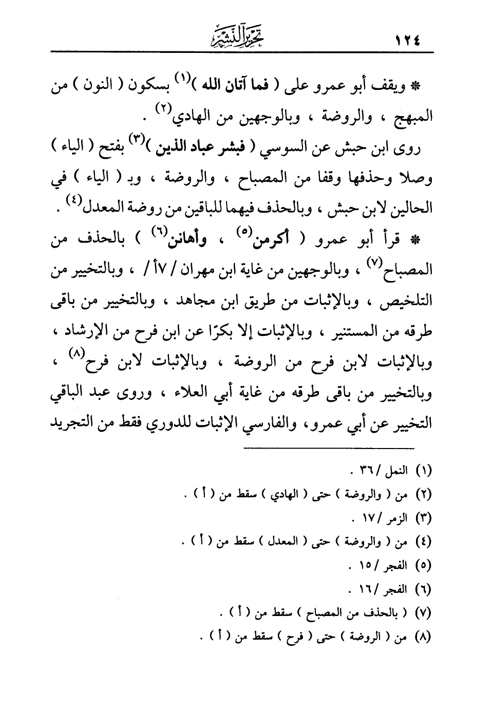* ويقف أبو عمرو على (فما آتان الله) (¬1) بسكون (النون) من المبهج، والروضة، وبالوجهين من الهادي (¬2).