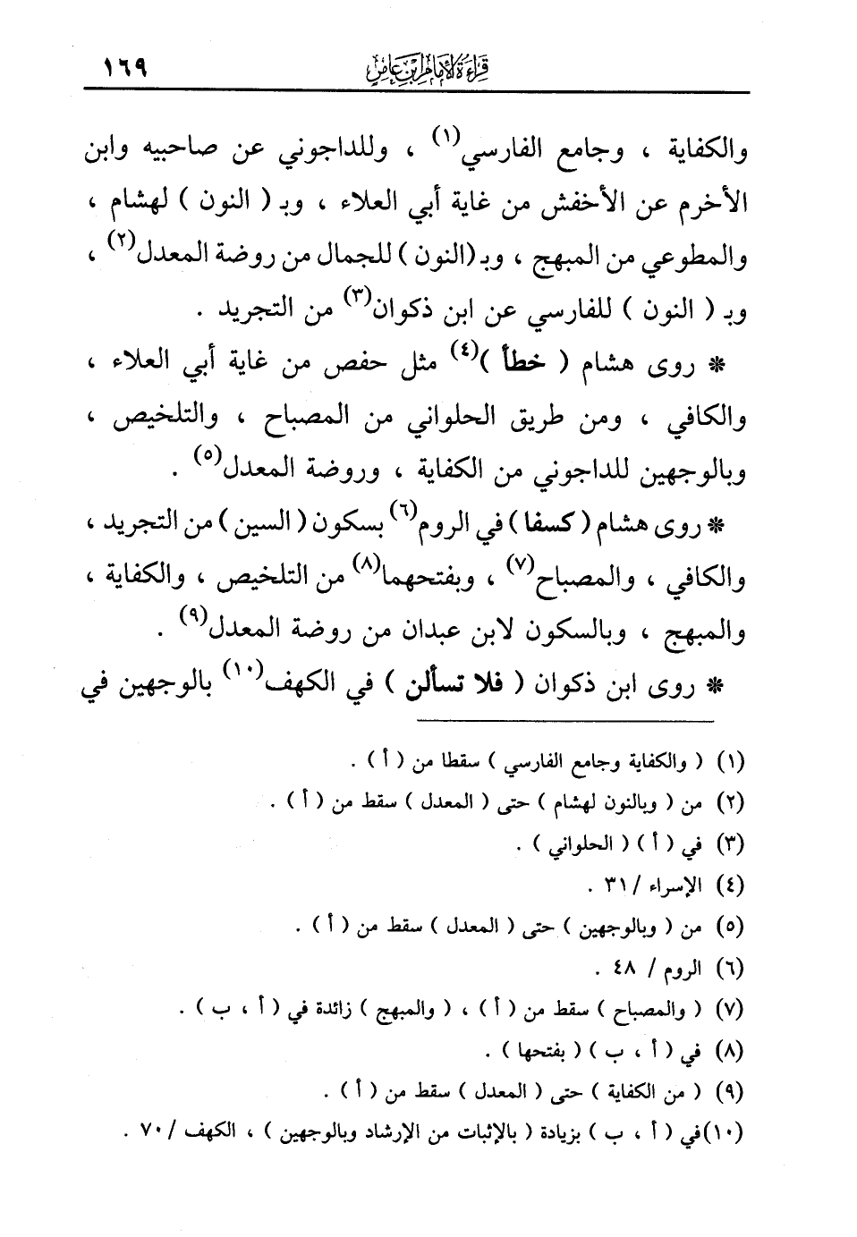 (¬10) في (أ، ب) بزيادة (بالإثبات من الإرشاد وبالوجهين)، الكهف/70.