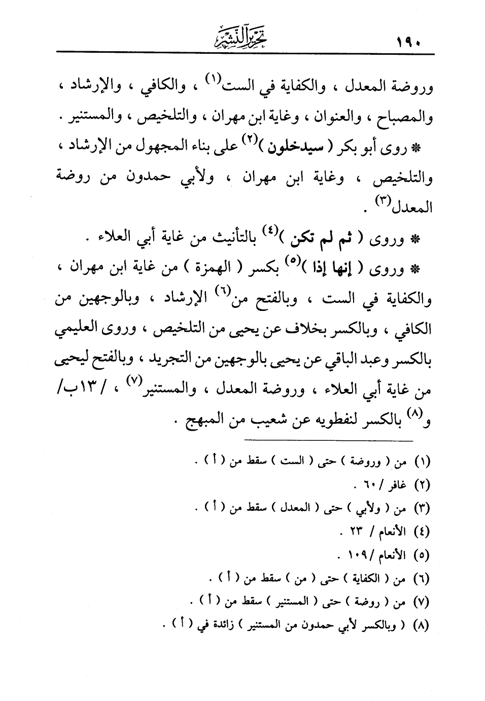 *وروى {(ثُمَّ لَمْ تَكُنْ)} (¬4) بالتأنيث من غاية أبي العلاء.
