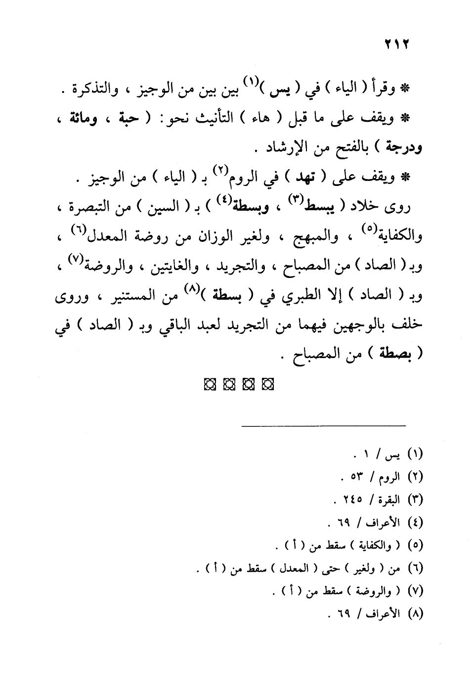روى خلاد (يبسط (¬3)، وبسطة (¬4)) ب (السين) من التبصرة، والكفاية (¬5)، والمبهج، ولغير الوزان من روضة المعدل (¬6)، وب (الصاد) من المصباح، والتجريد، والغايتين، والروضة (¬7)، وب (الصاد) إلا الطبري في (بسطة) (¬8) من المستنير، وروى خلف بالوجهين فيهما من التجريد لعبد الباقي وب (الصاد) في (بصطة) من المصباح.