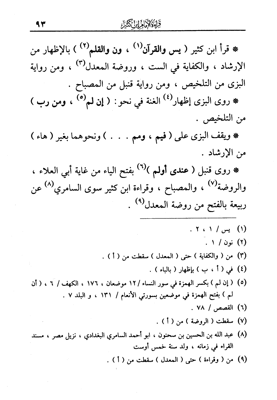 *قرأ ابن كثير ({يس وَالْقُرْآنِ} (¬1)، و {ن وَالْقَلَمِ} (¬2)) بالإظهار من الإرشاد، والكفاية في الست، وروضة المعدل (¬3)، ومن رواية البزى من التلخيص، ومن رواية قنبل من المصباح.