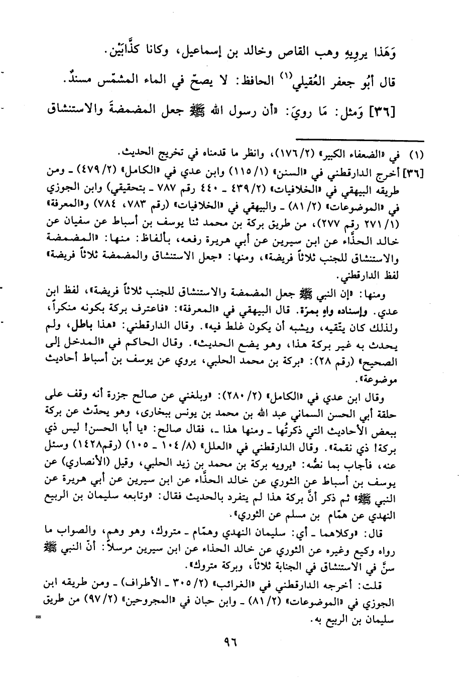 قال أبو جعفر العقيلي الحافظ: لا يصح في الماء المشمس مسندٌ.