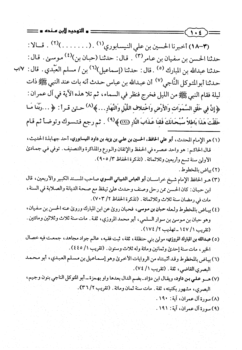(¬٤) بياض بالمخطوط ولعله حبان بن موسى، فحبان روى عن ابن المبارك وروى عنه الحسن بن سفيان، وهو حبان بن موسى بن سوار السلمى، أبو محمد المروزى، ثقة. مات سنة ثلاث وثلاثين ومائتين.