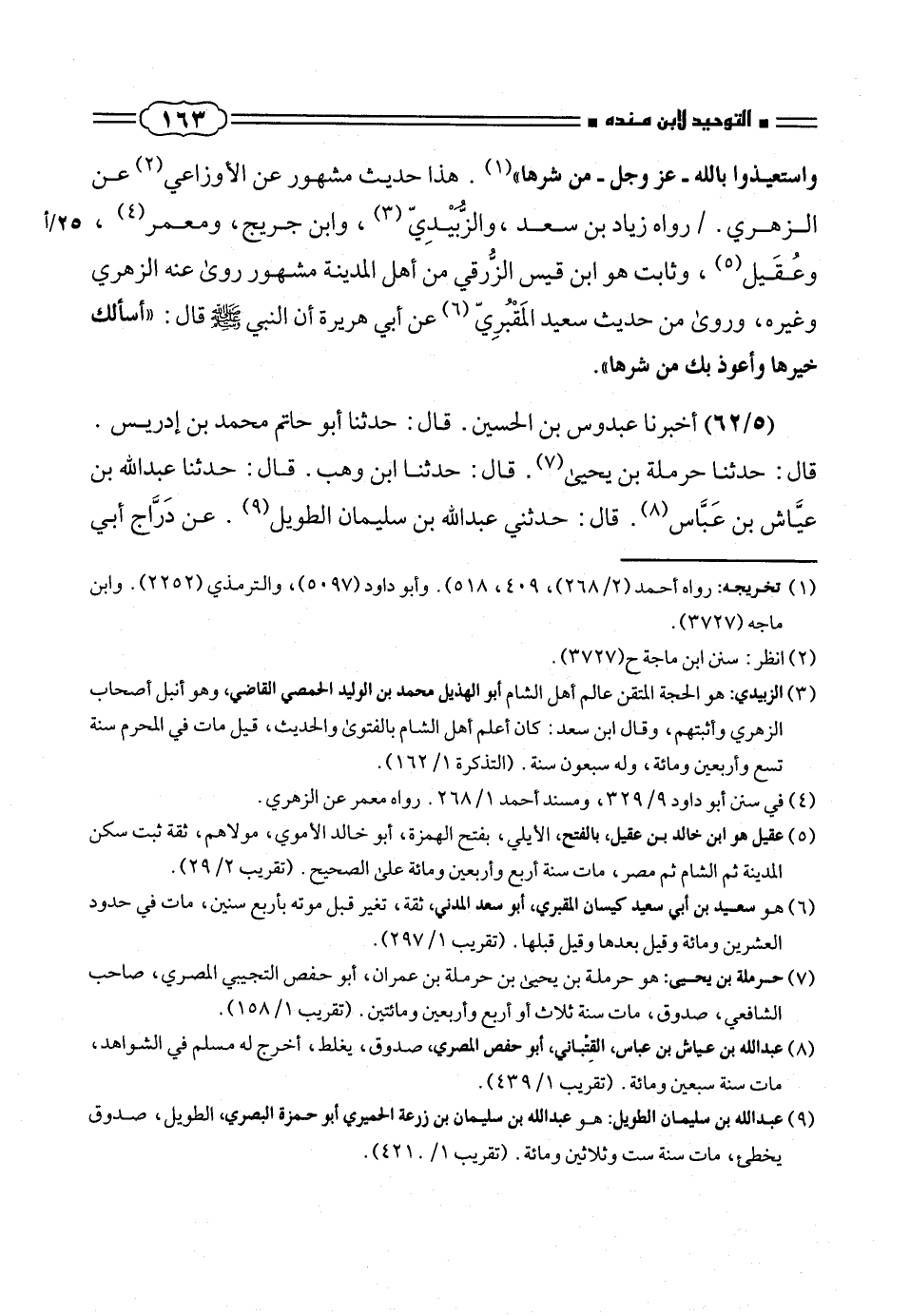 (¬٤) فى سنن أبو داود ٣٢٩/ ٩، ومسند أحمد ٢٦٨/ ١. رواه معمر عن الزهرى.