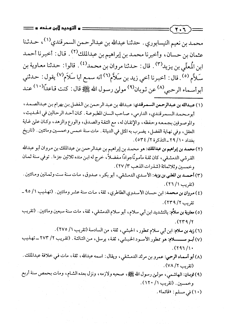 محمد بن نعيم النيسابورى. حدثنا عبد الله بن عبد الرحمن السمرقندى (¬١)، حدثنا عثمان بن حسان، وأخبرنا محمد بن إبراهيم بن عبد الملك (¬٢). قال: أخبرنا أحمد ابن المُعلّى بن يزيد (¬٣). قال: حدثنا مروان بن محمد (¬٤). قالوا: حدثنا معاوية بن سَلَاّم (¬٥). قال: أخبرنا أخى زيد بن سَلَاّم (¬٦) أنه سمع أبا سَلام (¬٧) يقول: حدثنى أبو أسماء الرحبى (¬٨) عن ثوبان (¬٩) مولى رسول الله صلّى الله عليه وسلم قال: كنت قاعداً (¬١٠) عند