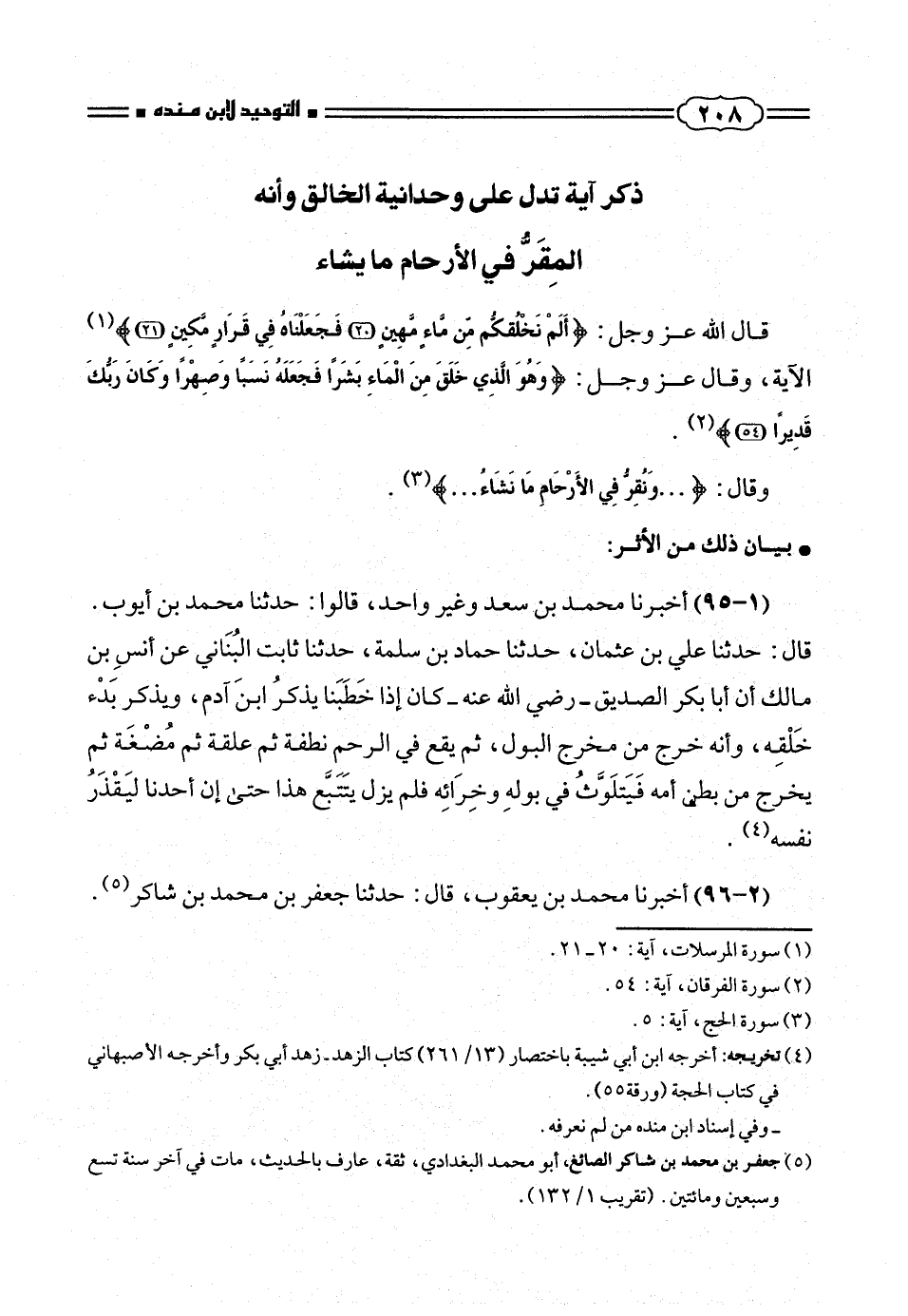 وقال: { ... وَنُقِرُّ فِي الْأَرْحامِ ما نَشاءُ .. }. (¬٣).