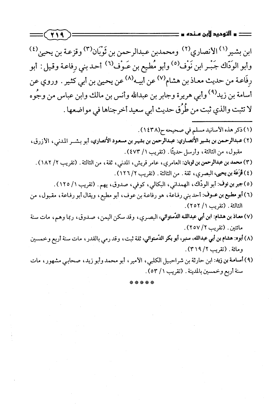 (¬٢) عبد الرحمن بن بشير الاْنصارى: عبد الرحمن بن بشير بن مسعود الأنصارى، أبو بشر المدنى، الأزرق، مقبول، من الثالثة، وأرسل حديثاً. (تقريب ٤٧٣/ ١).