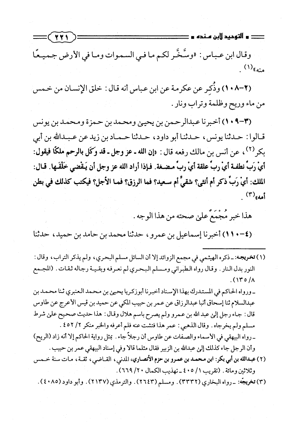 - رواه البيهقى فى الأسماء والصفات عن طاوس أن رجلاً جاء. بمثل رواية الحاكم إلا أنه زاد (الريح) وأن الرجل جاء كذلك الى عبد الله بن الزبير فقال مثلما قالا وفى إسناد البيهقى عمر بن حبيب.