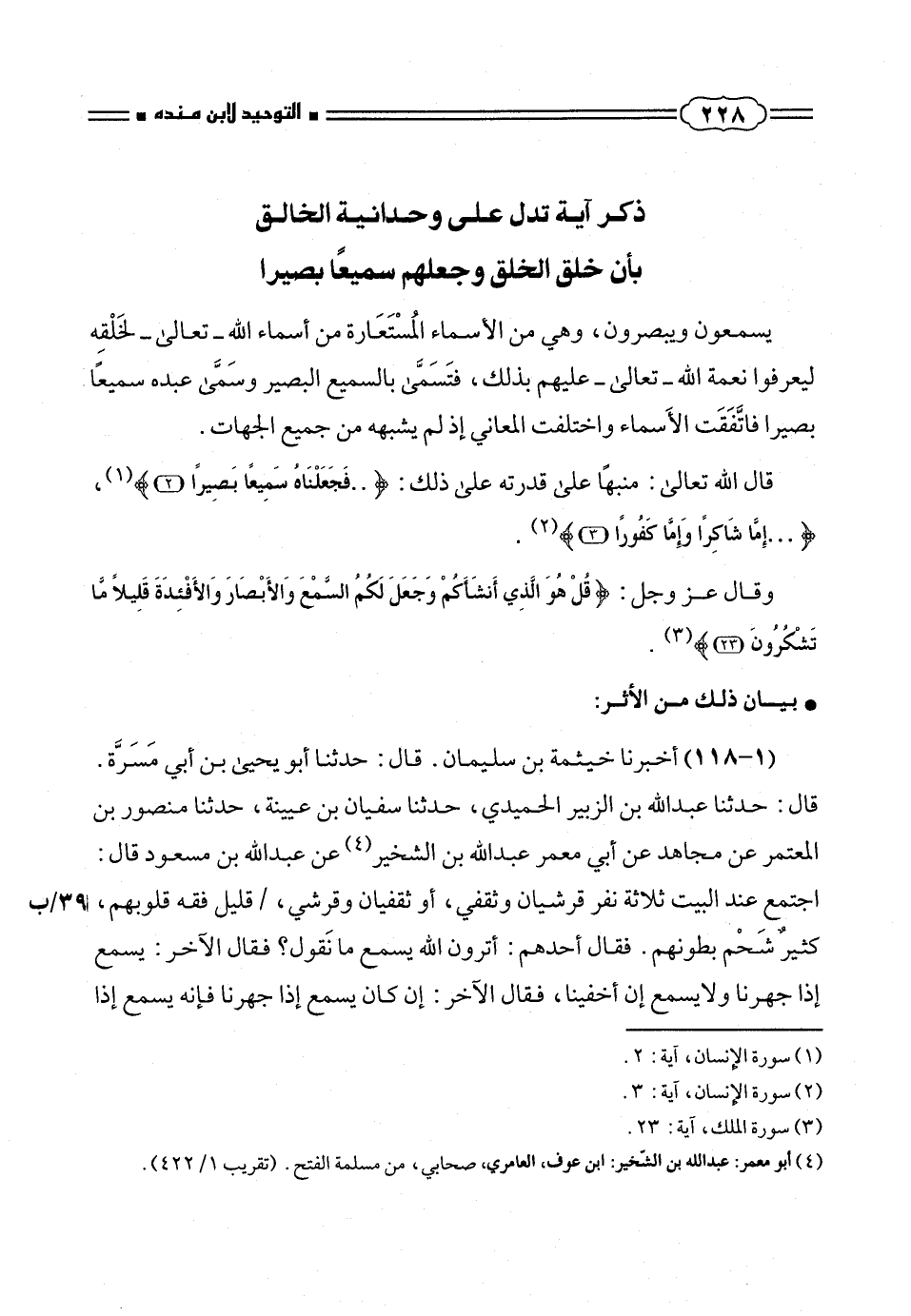 قال الله تعالى: منبهاً على قدرته على ذلك: { .. فَجَعَلْناهُ سَمِيعاً بَصِيراً (٢)} (¬١)، { ... إِمّا شاكِراً وَإِمّا كَفُوراً (٣)} (¬٢).