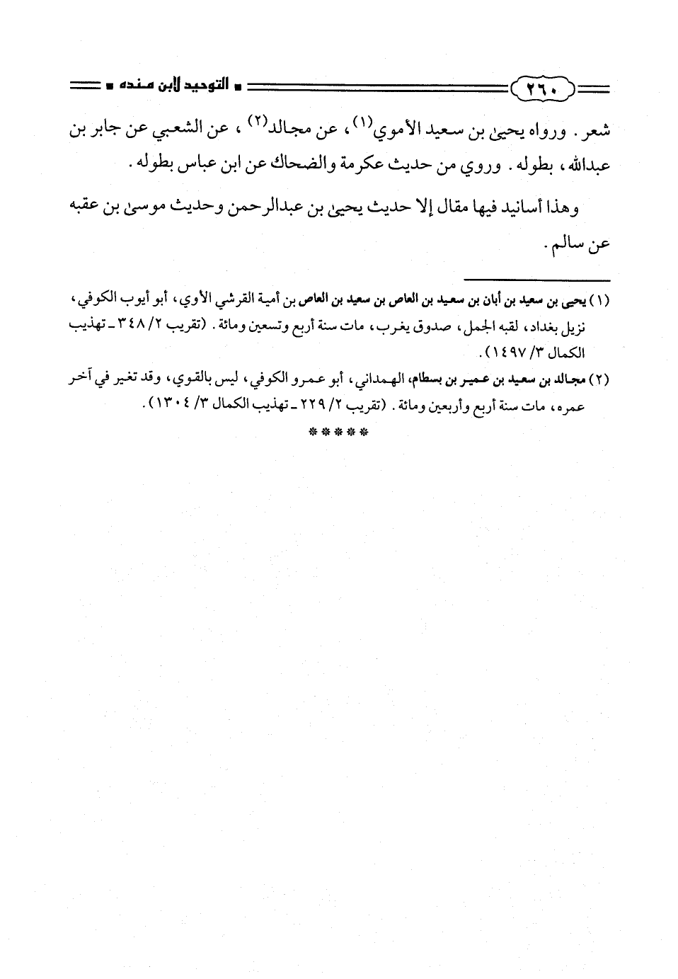 (¬٢) مجالد بن سعيد بن عمير بن بسطام، الهمدانى، أبو عمرو الكوفى، ليس بالقوى، وقد تغير فى آخر عمره، مات سنة أربع وأربعين ومائة. (تقريب ٢٢٩/ ٢ - تهذيب الكمال ١٣٠٤/ ٣).