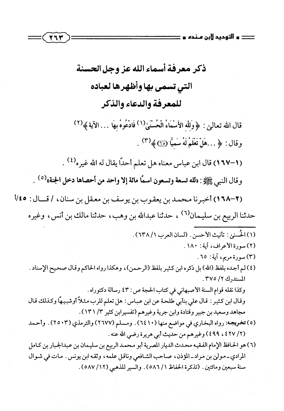 قال الله تعالىْ {وَلِلّهِ الْأَسْماءُ الْحُسْنى ١ فَادْعُوهُ بِها .. }. الآية (¬٢) وقال: { ... هَلْ تَعْلَمُ لَهُ سَمِيًّا (٦٥)} (¬٣).