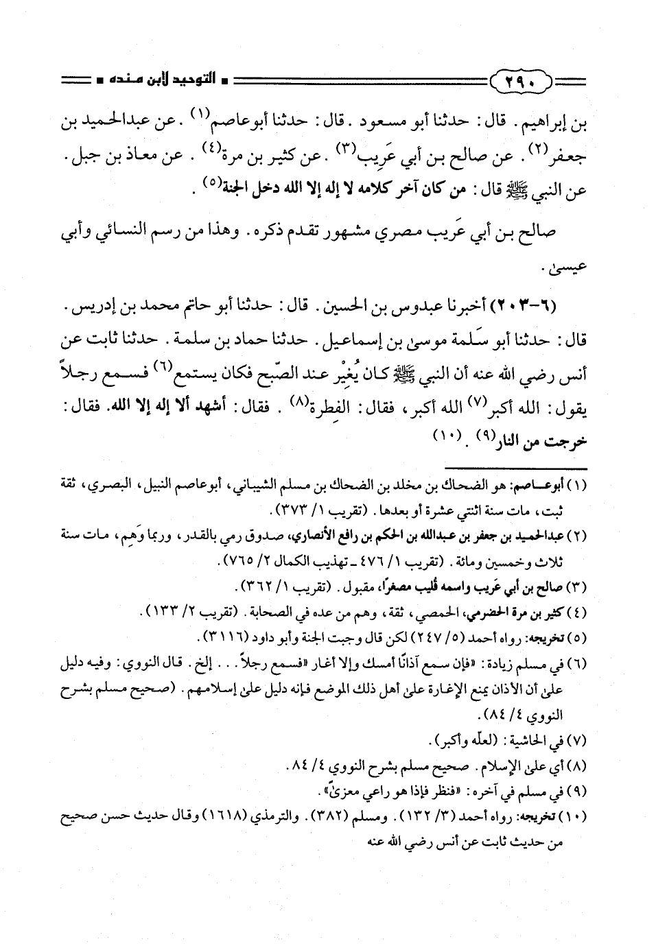 (¬١) ابوعاصم: هو الضحاك بن مخلد بن الضحاك بن مسلم الشيبانى، أبوعاصم النبيل، البصرى، ثقة ثبت، مات سنة اثنتى عشرة أو بعدها. (تقريب ٣٧٣/ ١).