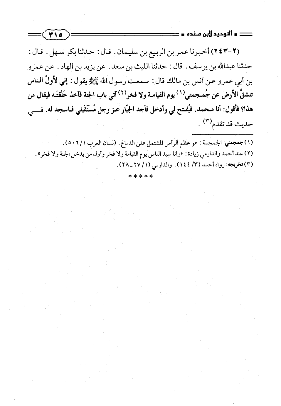 (¬٣) تخريجه: رواه أحمد (١٤٤/ ٣). والدارمى (٢٧/ ١ - ٢٨).