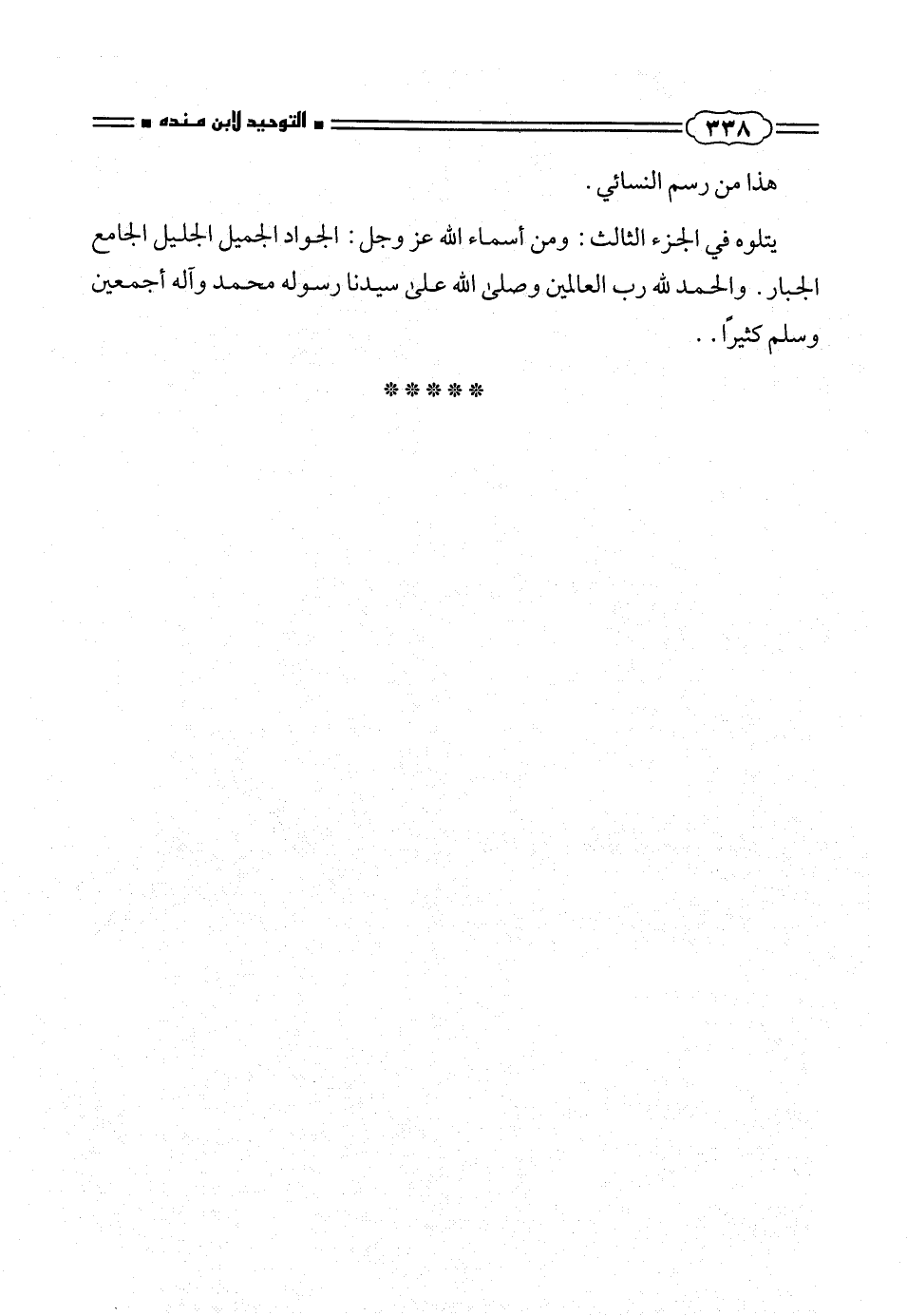 يتلوه فى الجزء الثالث: ومن أسماء الله عز وجل: الجواد الجميل الجليل الجامع الجبار. والحمد لله رب العالمين وصلى الله على سيدنا رسوله محمد وآله أجمعين وسلم كثيراً ..