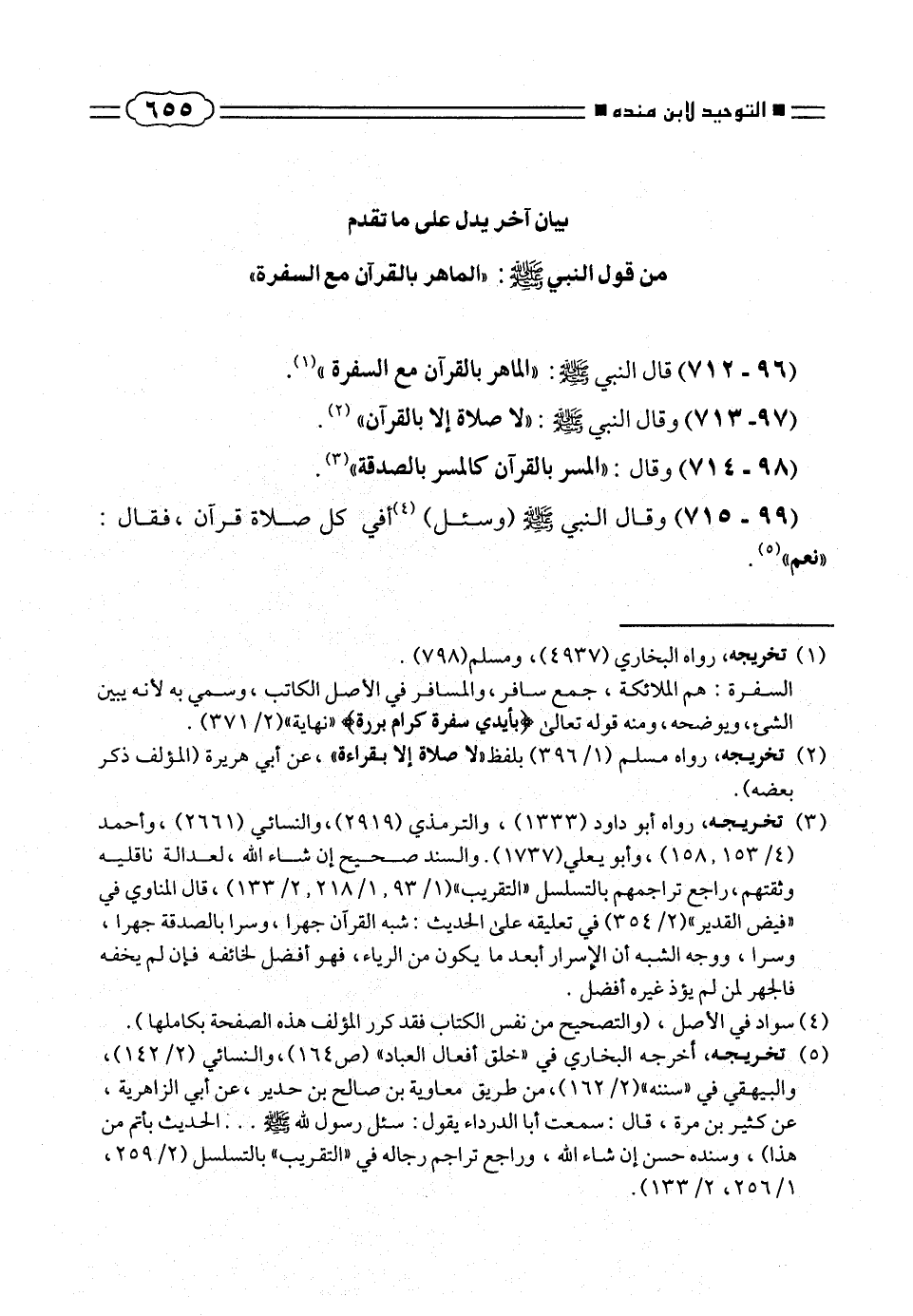(٩٦ - ٧١٢) قال النبى صلّى الله عليه وسلمى: «الماهر بالقرآن مع السفرة» (¬١).