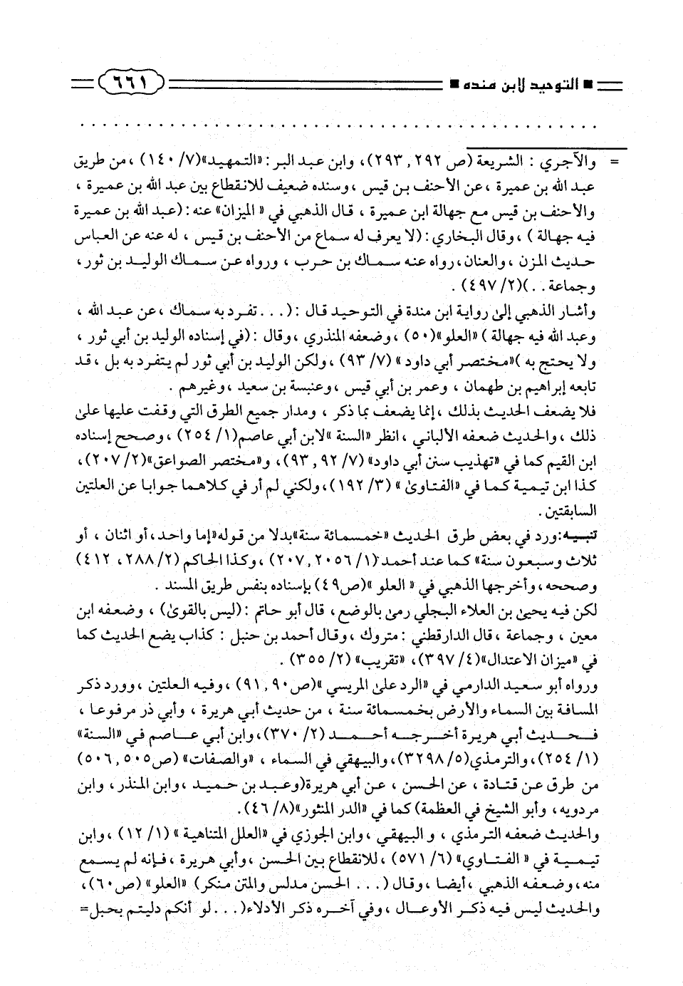 فلا يضعف الحديث بذلك، إنما يضعف بما ذكر، ومدار جميع الطرق التى وقفت عليها على ذلك، والحديث ضعفه الألبانى، انظر «السنة» لابن أبى عاصم (٢٥٤/ ١)، وصحح إسناده ابن القيم كما فى «تهذيب سن أبى داود» (٩٢/ ٧، ٩٣)، و «مختصر الصواعق» (٢٠٧/ ٢)، كذا ابن تيمية كما فى «الفتاوى» (١٩٢/ ٣)، ولكنى لم أر فى كلاهما جوابا عن العلتين السابقتين.