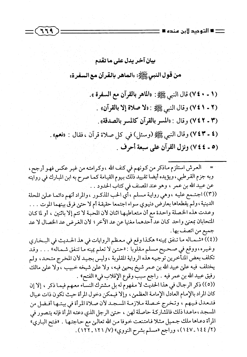 (١ - ٧٤٠) قال النبى صلّى الله عليه وسلم: «الماهر بالقرآن مع السفرة».