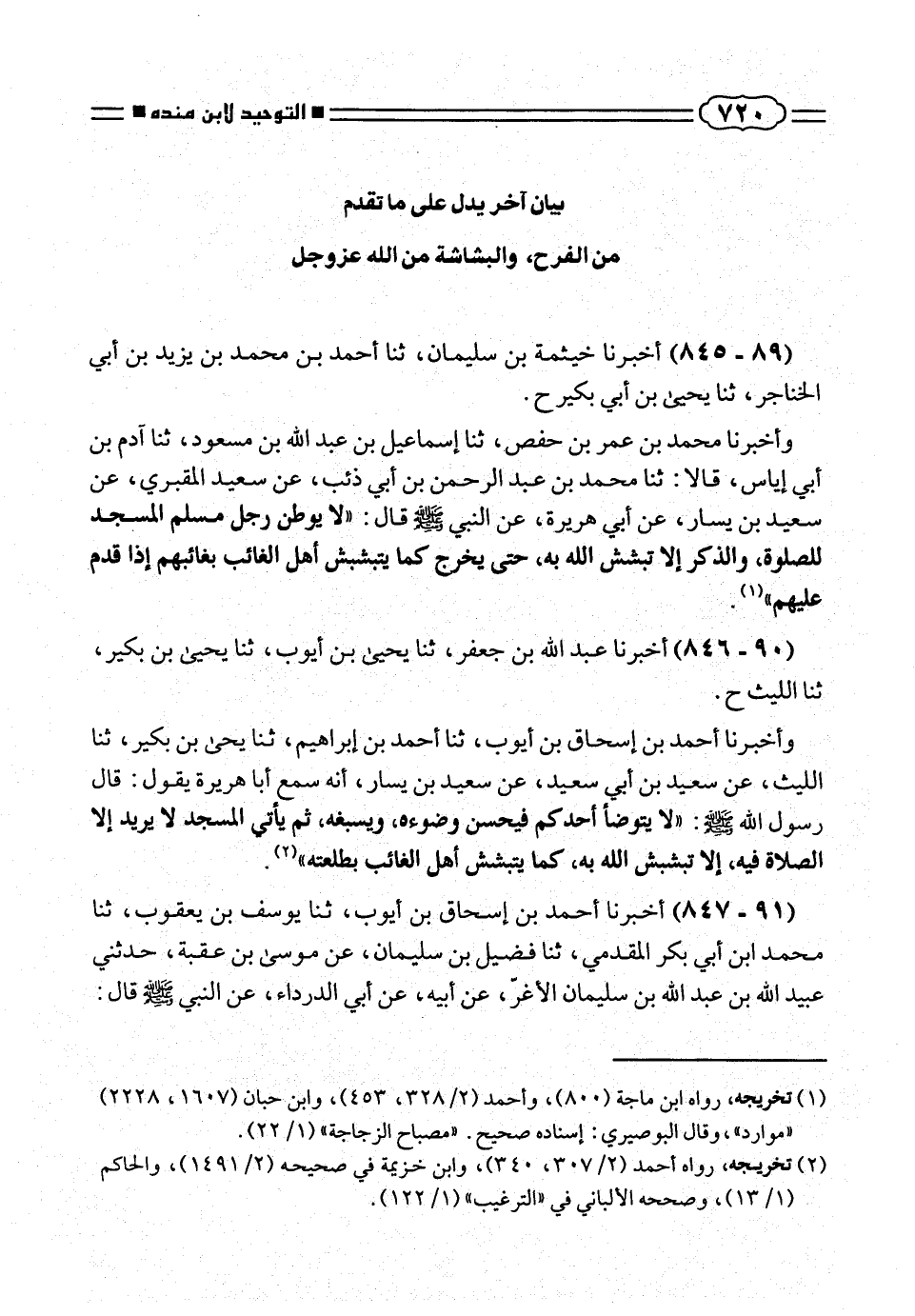 (٩٠ - ٨٤٦) أخبرنا عبد الله بن جعفر، ثنا يحيى بن أيوب، ثنا يحيى بن بكير، ثنا الليث ح.