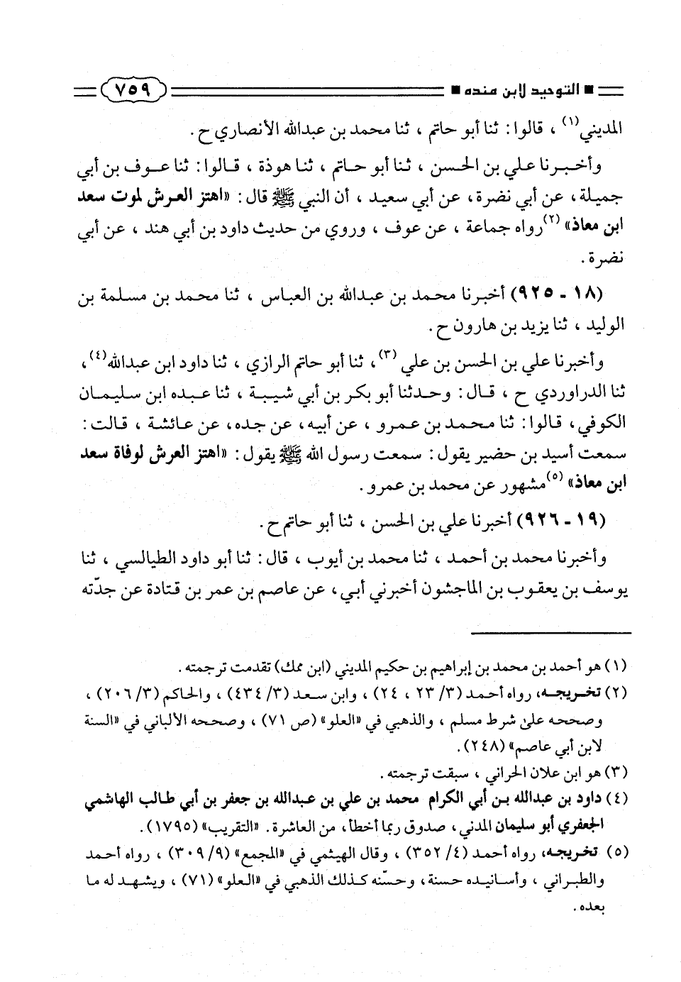 (١٨ - ٩٢٥) أخبرنا محمد بن عبد الله بن العباس، ثنا محمد بن مسلمة بن الوليد، ثنا يزيد بن هارونح.