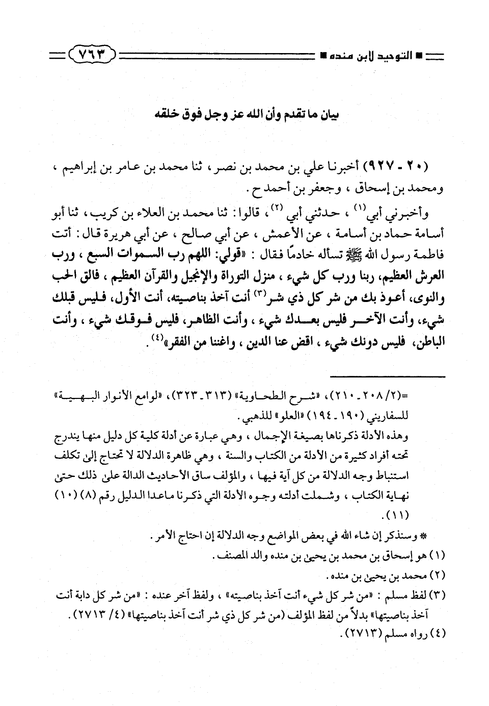 (¬٣) لفظ مسلم: «من شر كل شئ أنت آخذ بناصيته»، ولفظ آخر عنده: «من شر كل دابة أنت آخذ بناصيتها» بدلاً من لفظ المؤلف (من شر كل ذى شر أنت آخذ بناصيتها» (٢٧١٣/ ٤).