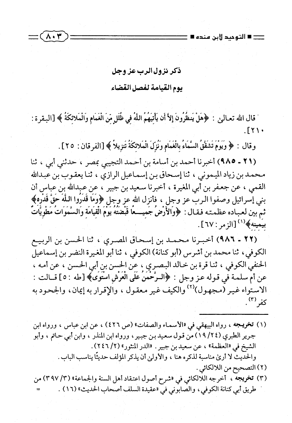 قال الله تعالى: {هَلْ يَنْظُرُونَ إِلاّ أَنْ يَأْتِيَهُمُ اللهُ فِي ظُلَلٍ مِنَ الْغَمامِ وَالْمَلائِكَةُ} [البقرة: