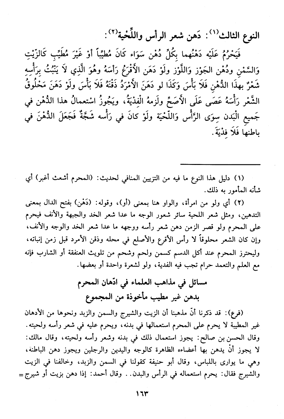 مسائل في مذاهب العلماء في ادهان المحرم بدهن غير مطيب مأخوذة من المجموع