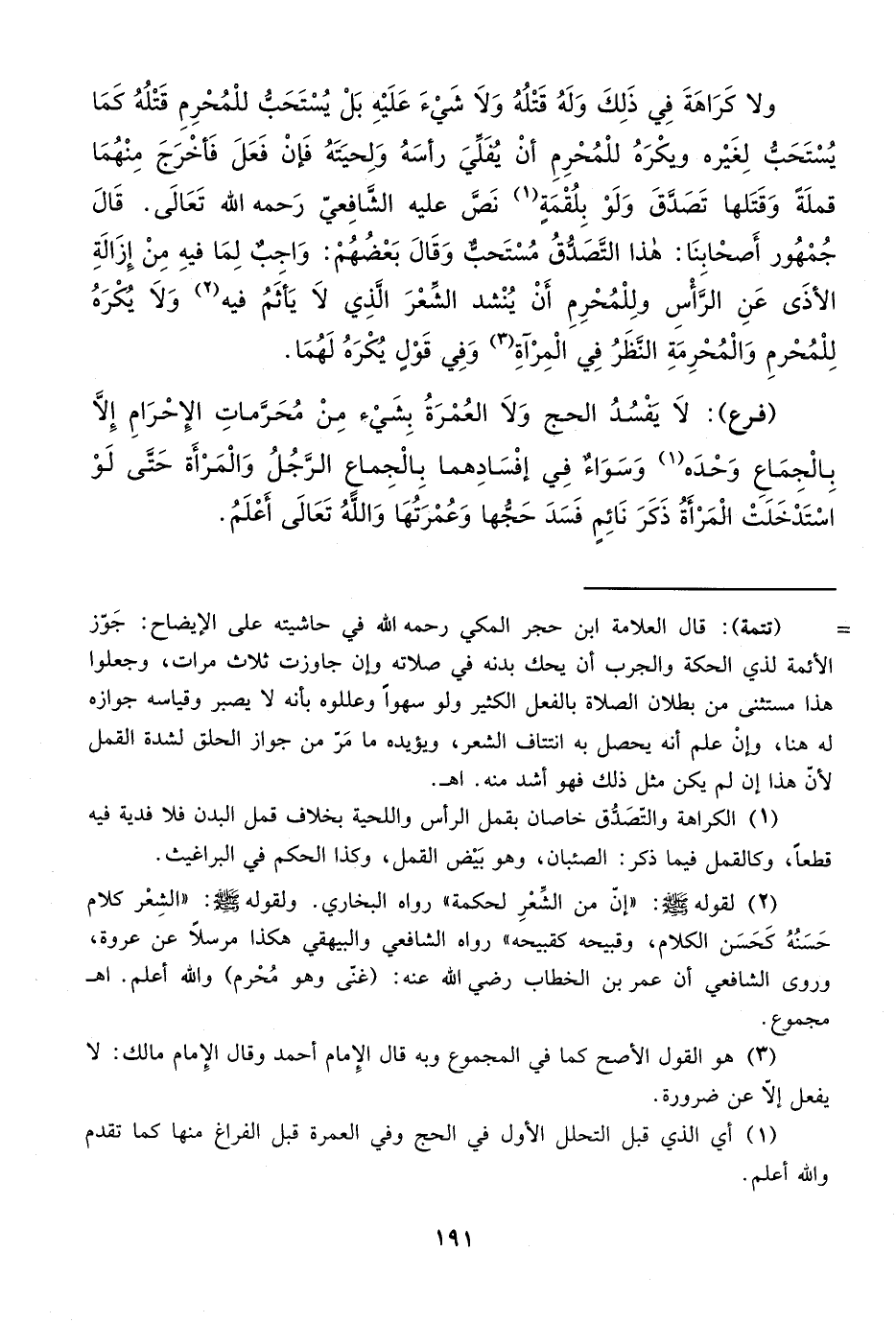 = (تتمة): قال العلامة ابن حجر المكي رحمه الله في حاشيته على الإيضاح: جَوز الأئمة لذي الحكة والجرب أن يحك بدنه في صلاته وإن جاوزت ثلاث مرات، وجعلوا هذا مستثنى من بطلان الصلاة بالفعل الكثير ولو سهواً وعللوه بأنه لا يصبر وقياسه جوازه له هنا، وإنْ علم أنه يحصل به انتتاف الشعر، ويؤيده ما مَرّ من جواز الحلق لشدة القمل لأن هذا إن لم يكن مثل ذلك فهو أشد منه. اهـ.