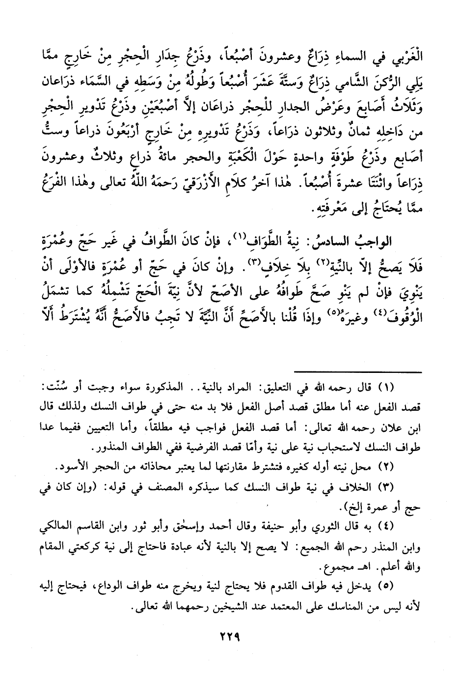 الواجبُ السادسُ: نِيةُ الطَّوَافِ (¬1)، فإنْ كانَ الطَّوافُ في غَير حَج وعُمْرَة فَلاَ يَصحُ إلاّ بالنيةِ (¬2) بِلاَ خِلاَف (¬3). وإنْ كانَ في حَج أو عُمْرَة فالأوْلَى أنْ يَنْوِيَ فإنْ لم يَنْوِ صَحَّ طَوافُهُ على الأصَح لأنَّ نِيّةَ الْحَجّ تَشْمِلُهُ كما تشمَلُ الْوُقُوفَ (¬4) وغيرَهُ (¬5) وإذَا قُلْنا بالأَصَح أَنَّ النية لا تَجِبُ فالأَصَحُّ أنهُ يُشْتَرَطُ أَلاّ