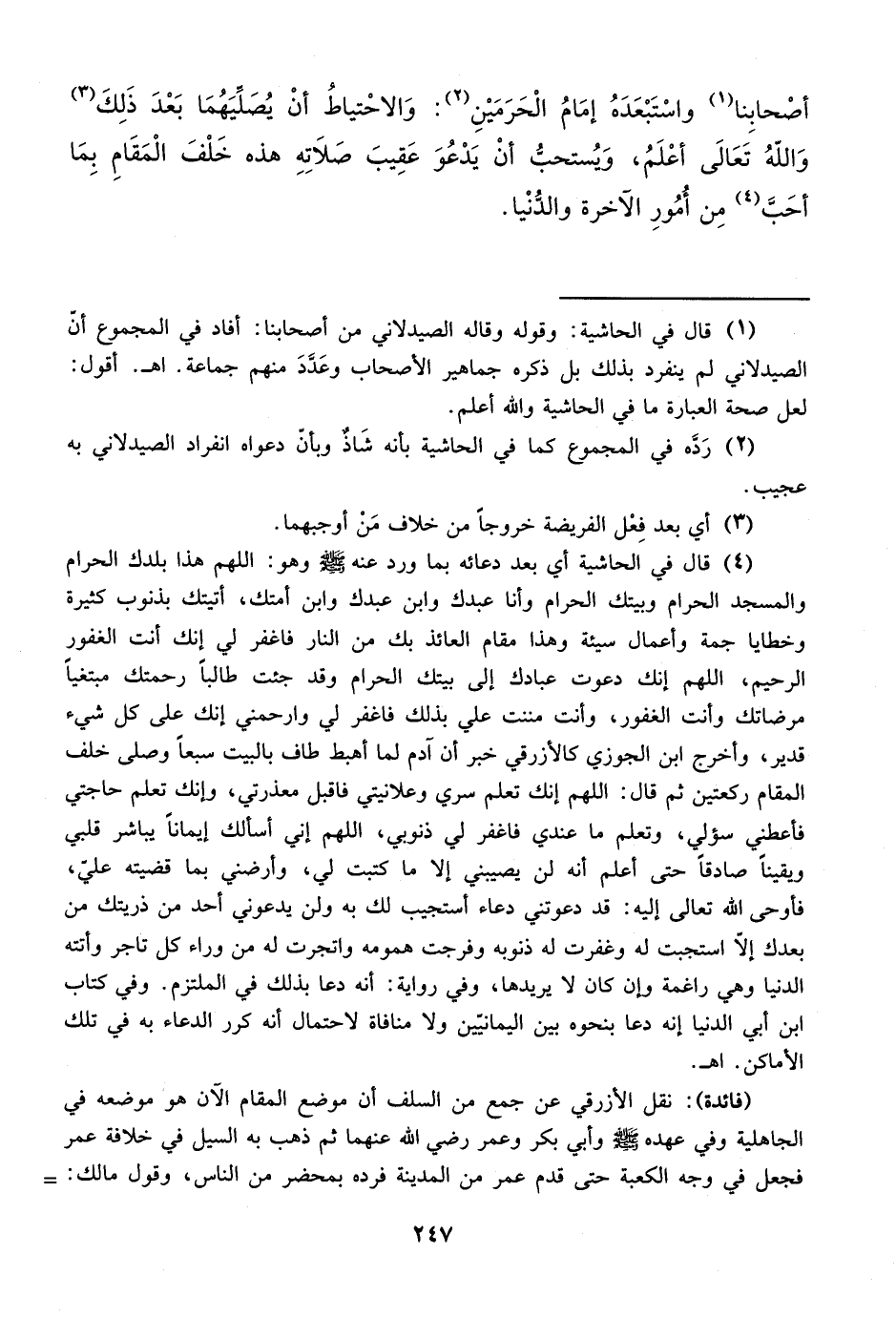 أصْحابِنا (¬1) واسْتَبْعَدَهُ إمَامُ الْحَرَمَيْنِ (¬2): وَالاحْتياط أنْ يُصَلِّيَهُمَا بَعْدَ ذَلِكَ (¬3) وَالله تَعَالَى أعْلَمُ، وَيُستحبُّ أنْ يَدْعُوَ عَقِيبَ صَلاَتِهِ هذه خَلْفَ الْمَقَامِ بِمَا أحَب (¬4) مِن أُمُورِ الآخرة والدُنْيا.