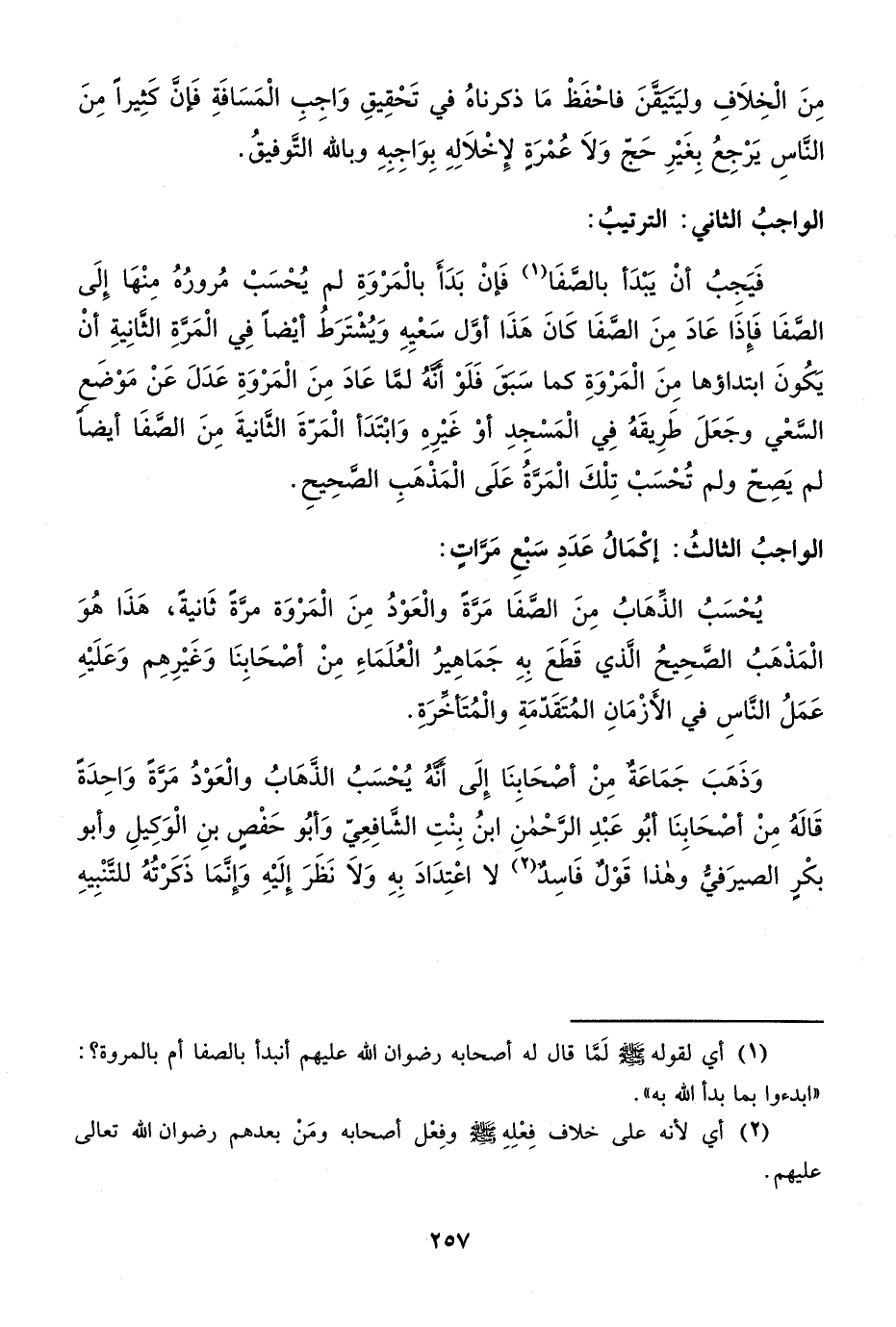 يُحْسَبُ الذِّهَابُ مِنَ الصَّفَا مَرة والْعَوْدُ مِنَ الْمَرْوَة مرَّة ثَانيةً، هَذَا هُوَ الْمَذْهَبُ الصَّحِيحُ الَّذي قَطَعَ بِهِ جَمَاهِيرُ الْعُلَمَاءِ مِنْ أصْحَابِنَا وَغَيْرِهِم وَعَلَيْهِ عَمَلُ النَّاسِ في الأَزْمَانِ المُتَقَدمَةِ والْمُتَأخرَةِ.