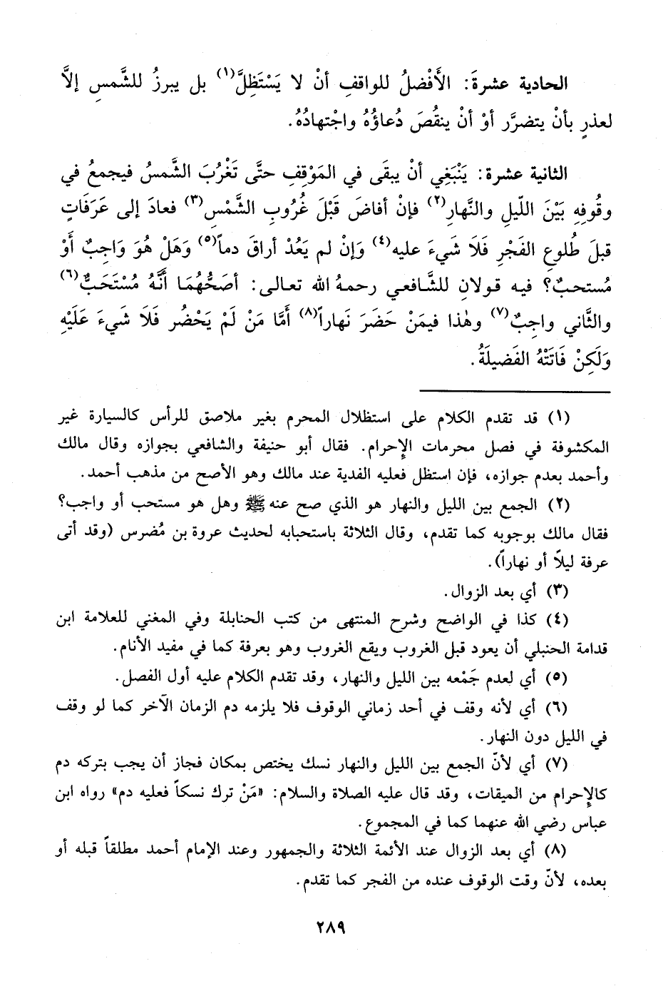 (¬4) كذا في الواضح وشرح المنتهى من كتب الحنابلة وفي المغني للعلامة ابن قدامة الحنبلي أن يعود قبل الغروب ويقع الغروب وهو بعرفة كما في مفيد الأنام.