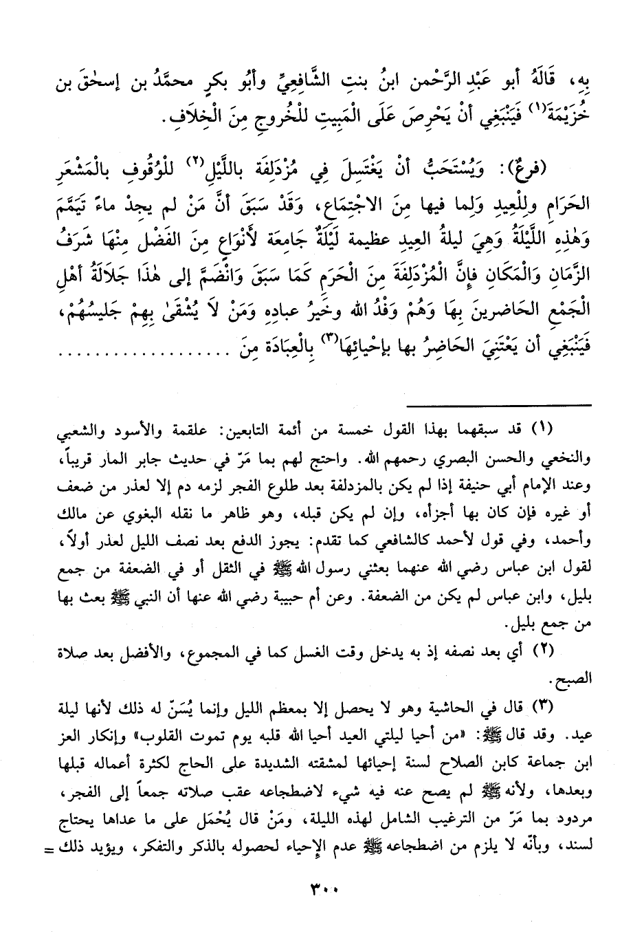 بِهِ، قَالَهُ أبو عَبْدِ الرَّحْمن ابنُ بنتِ الشَّافِعِي وأبُو بكر محمَّدُ بن إسحقَ بن خُزَيْمَةَ (¬1) فَيَنْبَغِي أنْ يَحْرِصَ عَلَى الْمَبِيتِ للْخُروجِ مِنَ الْخِلاَفِ.