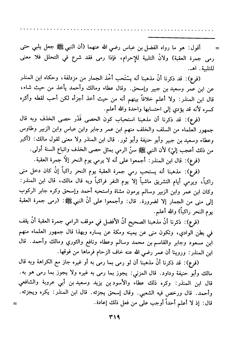 (فرع): قال ابن المنذر: أجمعوا على أنه لا يرمي يوم النحر إلا جمرة العقبة.