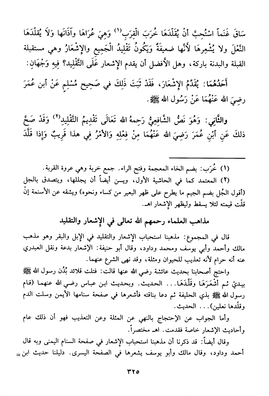 مذاهب العلماء رحمهم الله تعالى في الإِشعار والتقليد