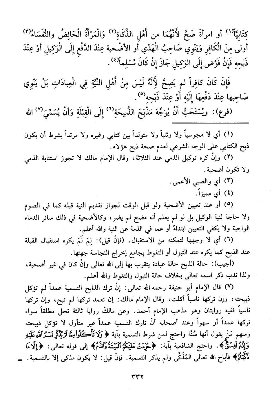(¬2) وإنْ كره توكيل الذمي عند الثلاثة، وقال الإمام مالك لا تجوز استنابة الذمي ولا تكون أضحية.