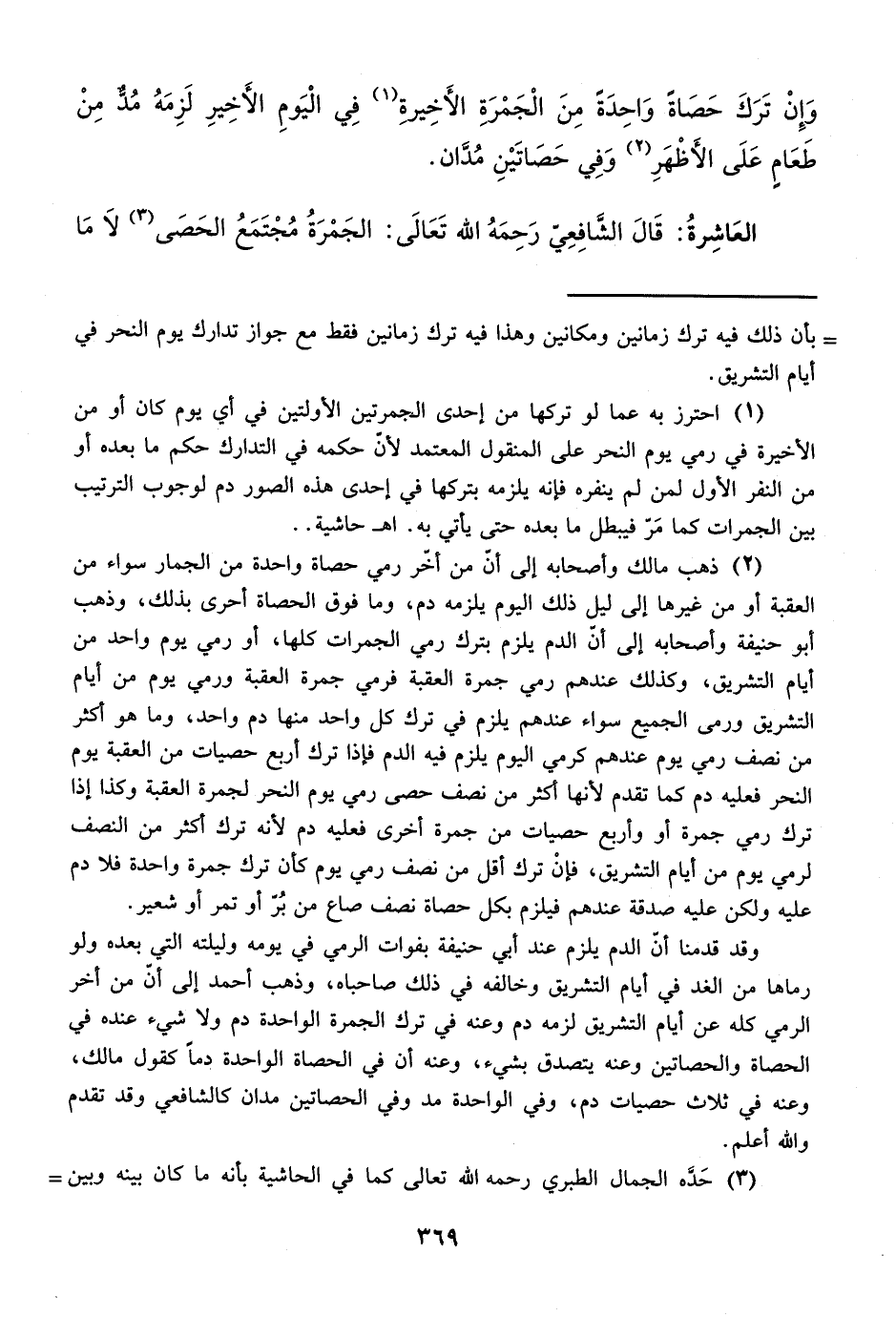 العَاشِرةُ: قَالَ الشَّافِعِيّ رَحِمَهُ الله تَعَالَى: الجَمْرَةُ مُجْتَمَعُ الحَصَى (¬3) لاَ مَا